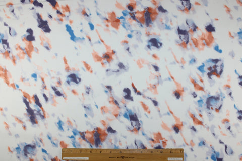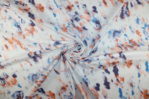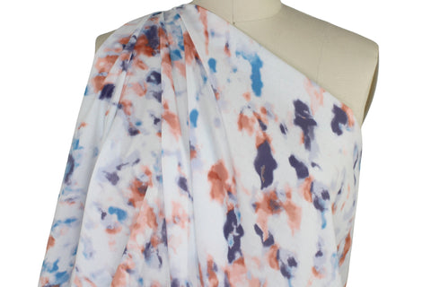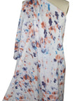 Abstraction in Pastels Cotton Lawn - Purples/Blues/Apricot on White