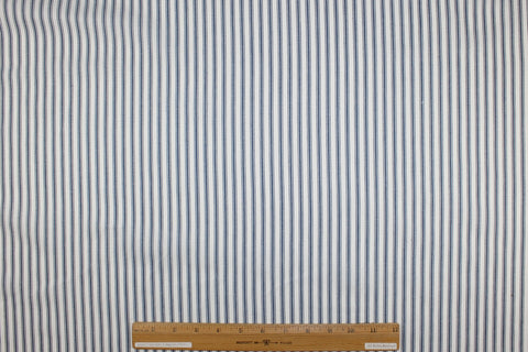 Ticking Stripe Cotton Shirting - Medium Blue/White
