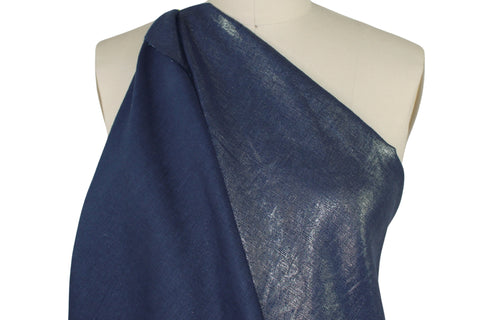 This beautiful linen has a stunning coloration with a surprise - it has a silvery coating on the face! The reverse is plain, and you can use this fabric in garments where the wrong side shows. It is the stuff of haute design dreams. It's a medium weight that will work for a wide variety of garments, from dresses and trousers to blazers and more!