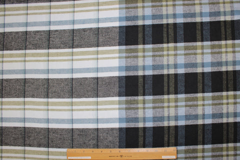 It's two, two, two fabrics in one! This lightweight flannel is super soft, with a plaid/geometric print that splits it down the middle. No, really - it switches from one print to the other, right at the middle of the fabric. You can do some serious Burberry sh... er, stuff, with this fabric, mixing patterns that coordinate perfectly This will be marvelous as a cozy flannel shirt, a skirt, loungewear, and more.