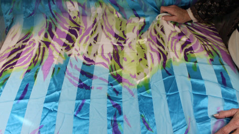 Burnout Stripe/Abstract Silk Charmeuse - Cool Tones