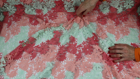 Italian Floral Guipure Lace - Pink/Coral/Soft Green