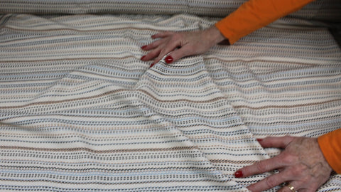 This wonderful cotton has a nubby weave, with stripes of different colored yarns running from selvage to selvage. It's soft and perfect for at least three-season wear. It's a fantastic weight for a jacket, dress, or skirt.