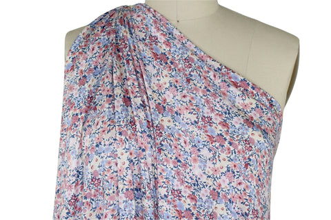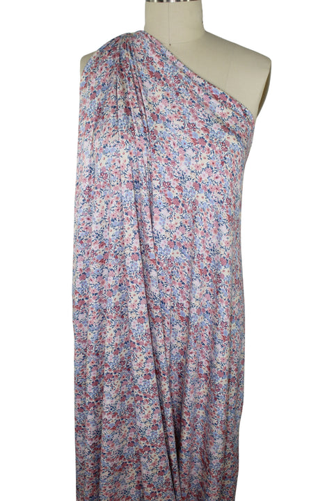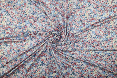 This beautiful rayon jersey has a pattern with a pretty floral that will work all year round. It's milled in Italy for one of New York's top designers. It's really comfortable, with lots of stretch in both directions. Make it into a fabulous dress, top, skirt, or leggings.