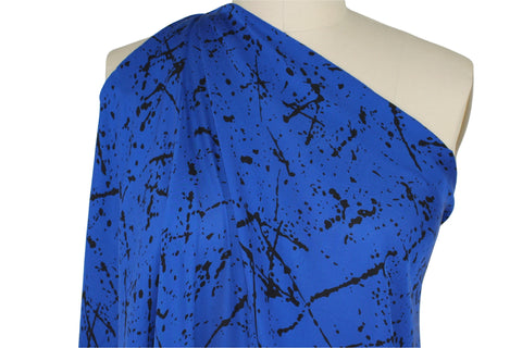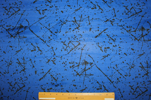 Abstract Print Silk Crepe Georgette - Black on Royal