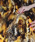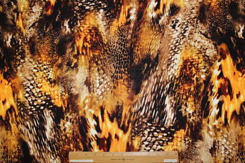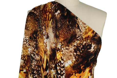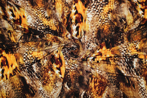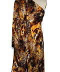 This beautiful jersey has an animal print in vibrant brown and yellow tones. It's really comfortable, with oodles of stretch and recovery, and it's one of my favorite fabrics to sew. Make a fabulous dress, top, skirt, or leggings.