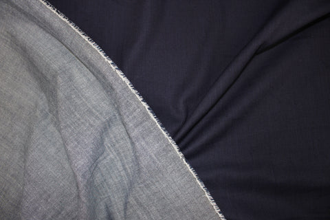 What a great, fun fabric this is! Milled in Italy for Engineered Garments, it's two lightweight denims (heavier than chambray but not 8 oz) that are joined with invisible stitching. One side is a dark wash; the other is medium wash. You can use both sides for a designer effect. This is great for women and men, and all ages. Make it into a shirt, jumpsuit, skirt, dress, shorts, or pants. It's that versatile.