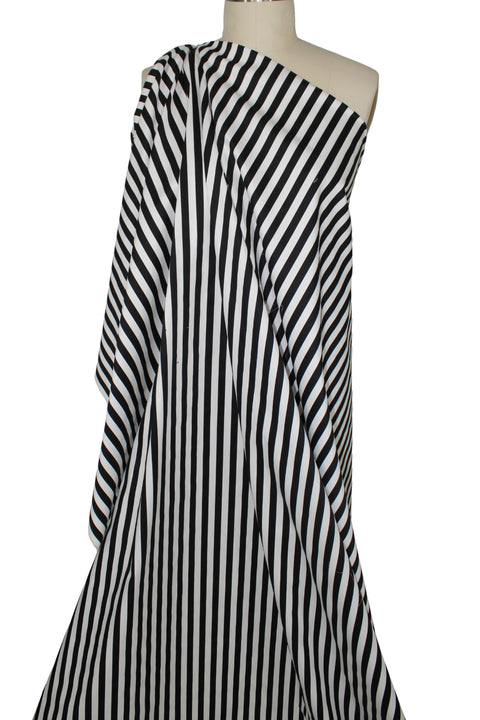 Italian Striped Stretch Cotton Shirt-weight Sateen - Black and White