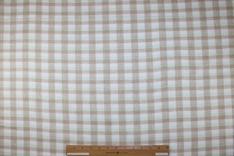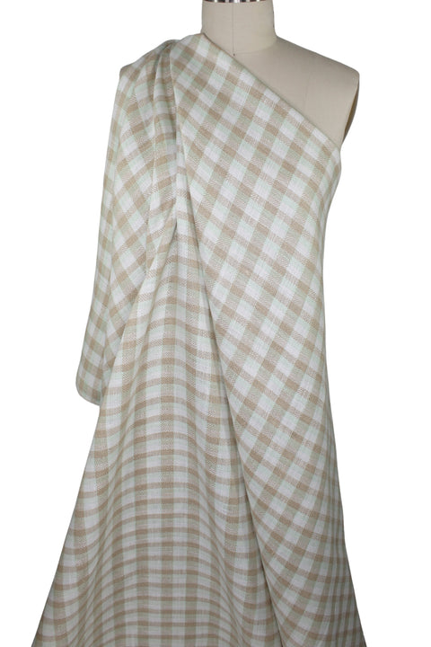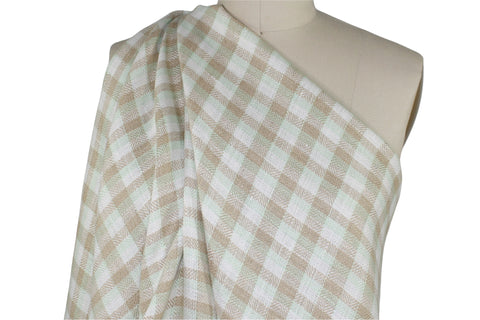 Plaid Jacquard Weave Linen - Tan/Celery/Off-White