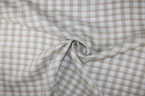 This beautiful linen has a soft hand, lovely drape, and plaid pattern in soft colors. It's a jacquard weave giving it a delicate textural feel. It's a medium weight that will sew up beautifully into dresses, skirts, light jackets, and more!