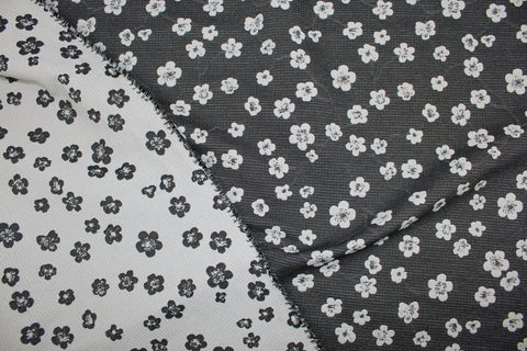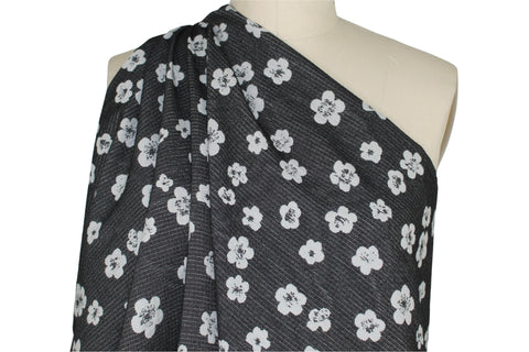 Oh my, this double-sided linen blend has a print of cherry blossoms that is just lovely. It's reversible, with one side of light gray on a deep gray, almost black ground, the other black on the light gray. It's a wonderful weight for a jacket or coat.
